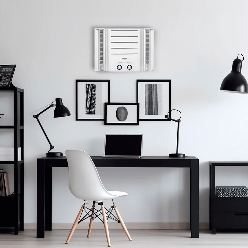 Design Eficiente: Com dimensões compactas e um peso de 25kg, este modelo é perfeito para instalação em janelas, otimizando espaço enquanto oferece grande desempenho.