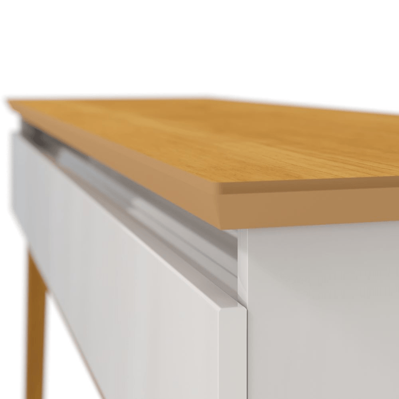 O Aparador Classic Off White/Nature da Imcal une elegância, funcionalidade e um estilo retrô sofisticado. Seu design diferenciado valoriza o ambiente, oferecendo amplo espaço interno para organização, além de um tampo robusto ideal para apoiar objetos decorativos.