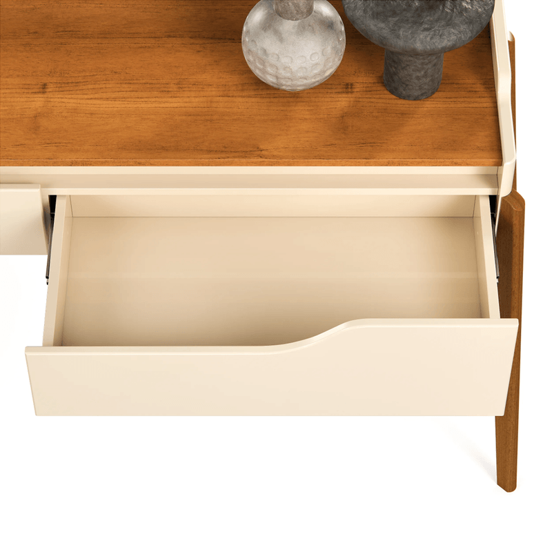 - Duas gavetas com corrediças telescópicas para abertura suave