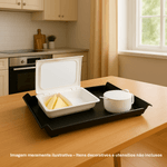 Descrição Comercial – Bandeja Coza Cozy Grande PretoDesign e Versatilidade A Bandeja Coza Cozy Grande Preto é ideal para quem busca praticidade com estilo. Perfeita para servir café da manhã na cama, montar um mini bar ou organizar o ambiente com elegância e funcionalidade. Seu visual moderno se adapta facilmente a qualquer estilo de decoração.