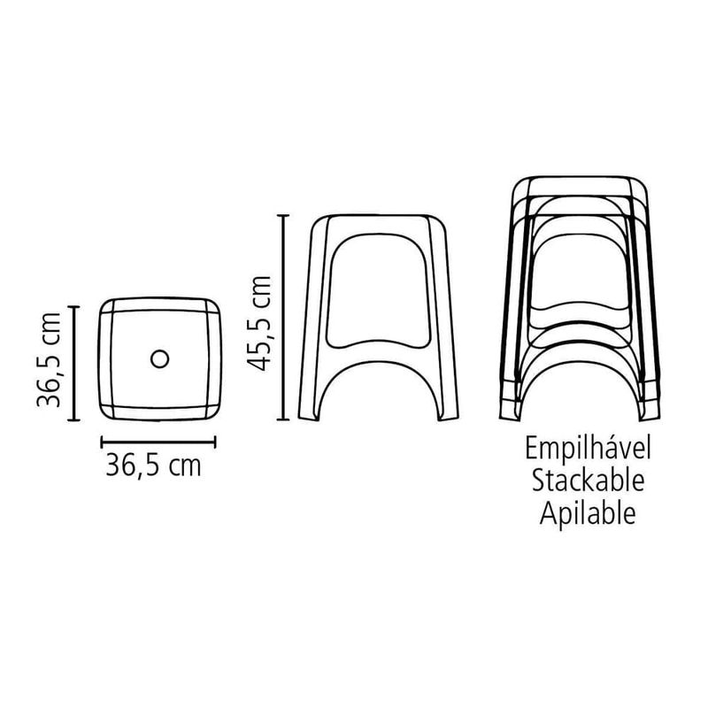Material de Polipropileno: Fabricada em polipropileno, a banqueta é resistente e suporta até 100 kg.