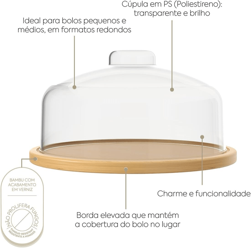 - Uso ideal para servir bolos pequenos e médios, tortas, doces e pães