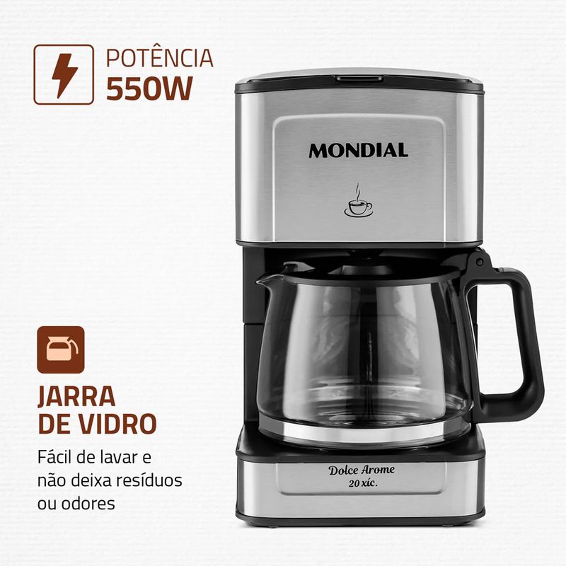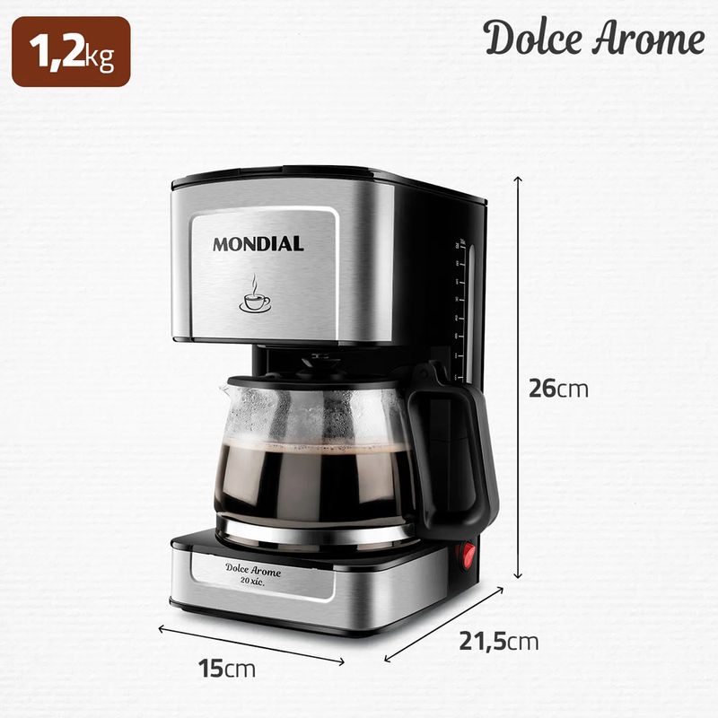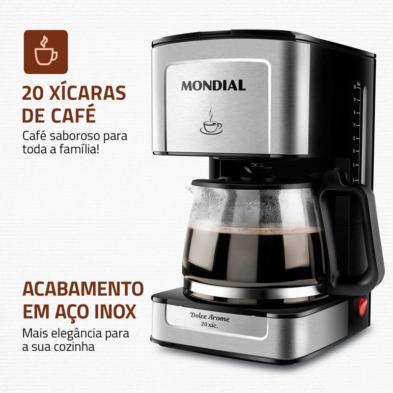 A Cafeteira Elétrica Mondial Dolce Arome C-43-20X-SI é indispensável para quem ama um bom café. Com capacidade para fazer até 20 xícaras, é ideal para toda a família.