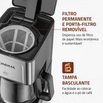 Filtro Permanente: Dispensa a utilização de filtro de papel, proporcionando mais economia e sustentabilidade. O porta-filtro removível facilita a limpeza.