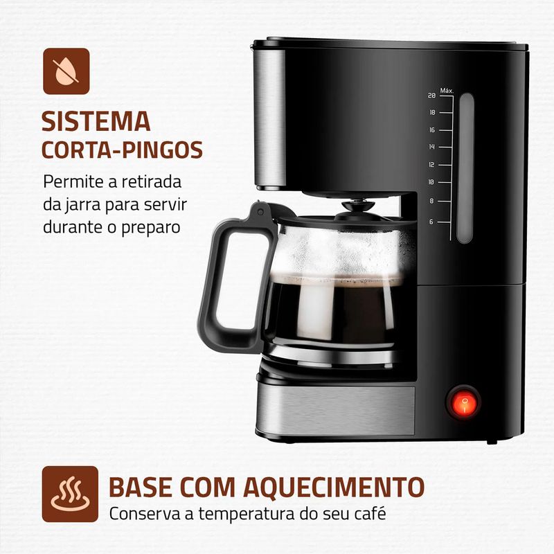 Praticidade: Permite a retirada da jarra para servir o café durante o preparo, sem derramar.