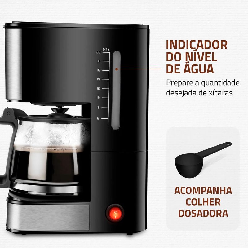 Elegância na Cozinha: Na cor preta e com acabamento em inox, a cafeteira adiciona mais sofisticação à sua cozinha.