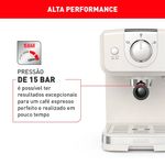 - Bomba com 15 BAR de Pressão: Infinitas possibilidades de preparo com sabores autênticos em uma temperatura ideal.