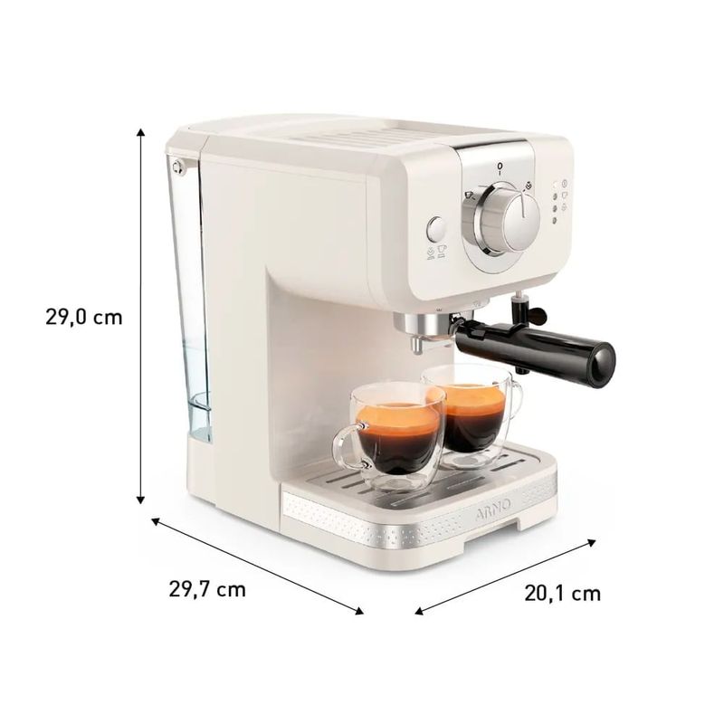 Com a Cafeteira Espresso Arno Steam e Pump Opio Soleil, você traz estilo retrô e café profissional para sua cozinha, desfrutando de uma experiência de barista com praticidade e qualidade.