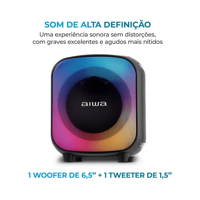 A Caixa Amplificada AIWA Party Box PB07 entrega potência sonora de 100W RMS com qualidade excepcional, ideal para animar festas, reuniões e eventos. Compacta e resistente, proporciona graves profundos e agudos nítidos para uma experiência sonora completa.