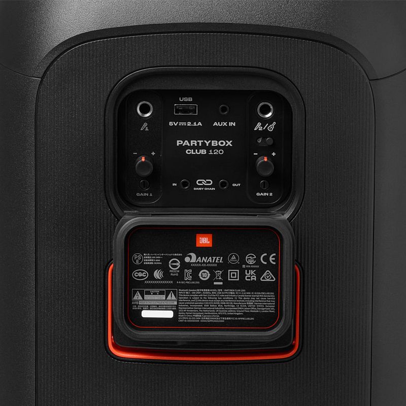 - Alça Dobrável: Leve o JBL PartyBox Club 120 para qualquer lugar com facilidade. A alça dobrável permite transporte prático e confortável.