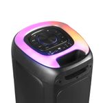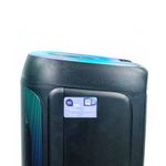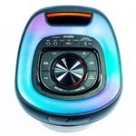 Construída com material plástico de alta qualidade, essa caixa de som é compacta, durável e fácil de transportar, ideal para festas, viagens e uso diário.