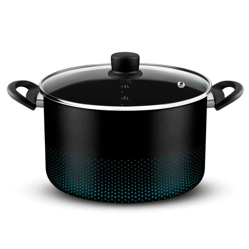 Medições Internas: A marcação de medidas na parte interna da caçarola ajuda a preparar receitas na medida certa, oferecendo maior controle e precisão no preparo dos alimentos.