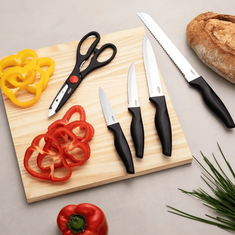 1 Faca para Pão 8” – lâmina serrilhada perfeita para cortar pães e bolos sem amassar.
