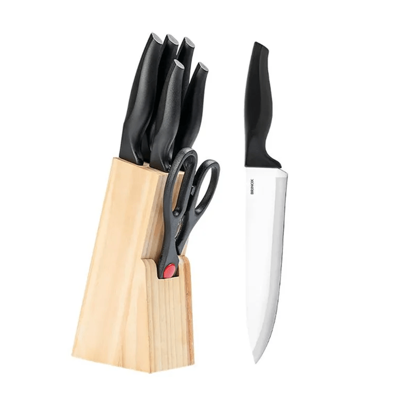 Conjunto de Facas Brinox Cross 7 Peças Aço Inox com Cepo - Preto