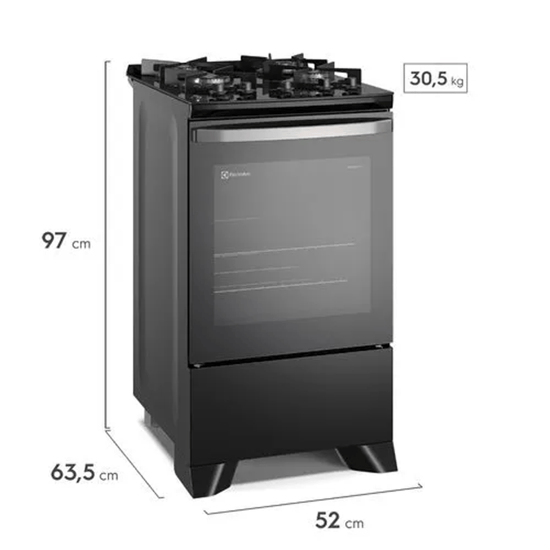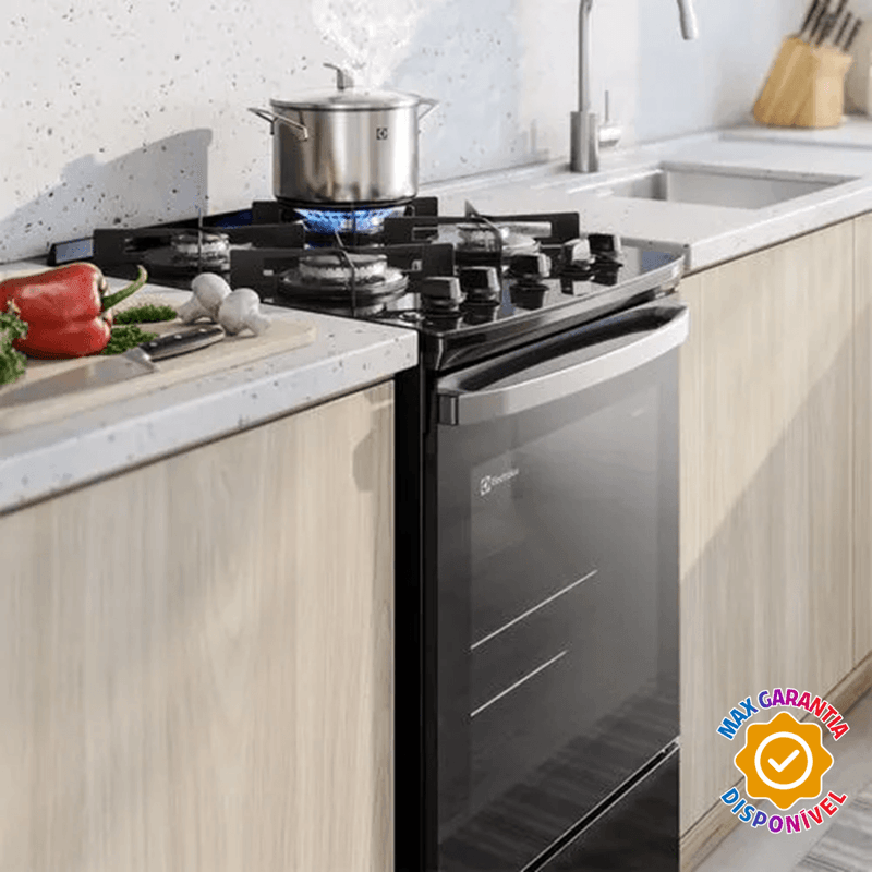 Fogão 4 Bocas Electrolux Preto Efficient Mesa Vidro FE4GBDescrição: Prepare suas receitas com mais facilidade, segurança e rapidez. Com tecnologia PerfectCook, Tripla Chama e VaporBake, este fogão garante cozimento uniforme, maior controle de temperatura e resultados saborosos em menos tempo.