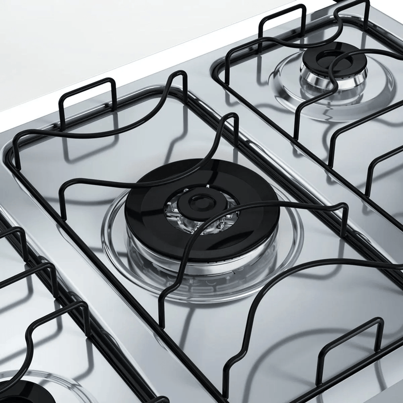 5 bocas, incluindo Tripla Chama de 3,3 kW para preparo rápido e eficiente.