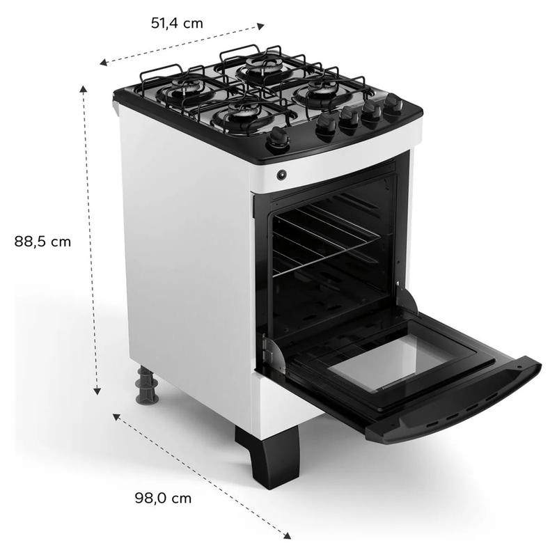 O Fogão Consul 4 Bocas CFO4ZAB é a escolha ideal para quem busca praticidade, segurança e conforto no dia a dia. Com design moderno, mesa esmaltada de fácil limpeza e forno espaçoso de 58 litros, ele entrega desempenho e durabilidade para tornar o preparo das refeições muito mais simples.