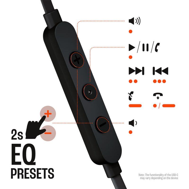 - Controle Remoto de Três Botões: O prático controle remoto permite que você ajuste o volume, controle a reprodução de músicas e selecione predefinições de equalização, tudo ao alcance de um botão.