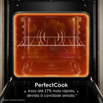porta ampla e iluminada permite acompanhar o preparo sem abrir o forno, mantendo a temperatura constante e o resultado perfeito.