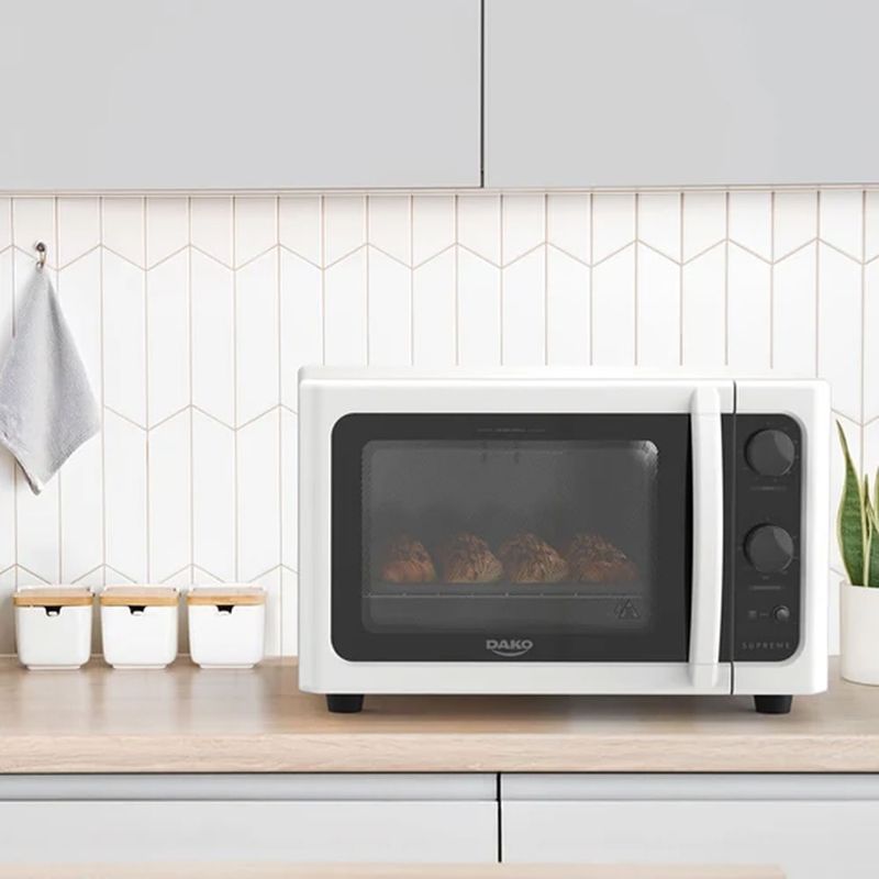 O Forno Elétrico Dako Supreme Branco de Bancada impressiona pelo seu design exclusivo e acabamento refinado. Com seu exterior em branco clássico e detalhes cuidadosamente trabalhados, este eletrodoméstico se integra perfeitamente a qualquer estilo de cozinha, trazendo um toque de sofisticação e modernidade ao ambiente.