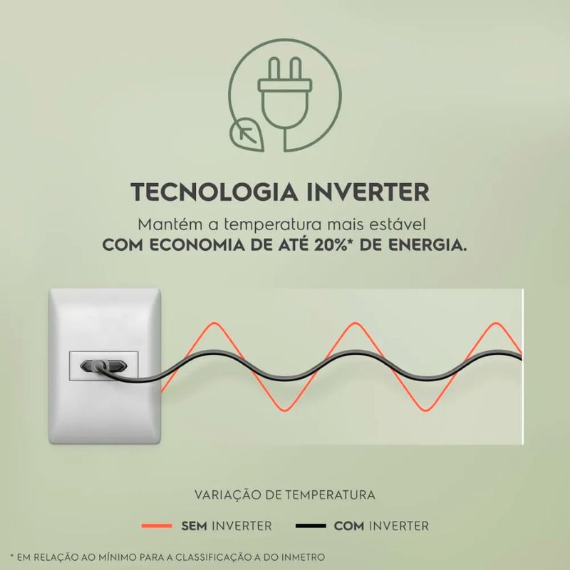 Este freezer utiliza gás de refrigeração ecológico, minimizando o impacto ambiental e contribuindo para a preservação da camada de ozônio.