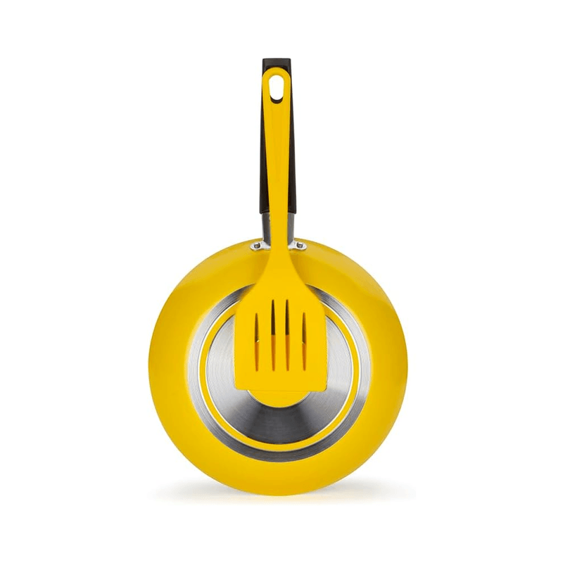 FRIGIDEIRA ANTIADERENTE MULTIFLON COLOR AMARELA 24 CM COM ESPÁTULA A Frigideira Multiflon Color Amarela 24 cm une design vibrante com desempenho profissional. Produzida em alumínio puro certificado e equipada com o revestimento Antiaderente Ultra7, ela garante alta resistência, preparação saudável e facilidade no dia a dia. Ideal para quem busca qualidade, durabilidade e uma cozinha cheia de personalidade.