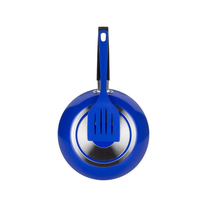 FRIGIDEIRA ANTIADERENTE MULTIFLON COLOR AZUL 20 CM COM ESPÁTULA A Frigideira Multiflon Color Azul oferece beleza, resistência e alto desempenho para o dia a dia. Produzida em alumínio puro certificado e equipada com o revestimento antiaderente Ultra7, ela garante preparo saudável, fácil limpeza e durabilidade superior. Com cor vibrante inspirada no estilo Pop Art, transforma sua cozinha em um ambiente mais moderno e divertido.