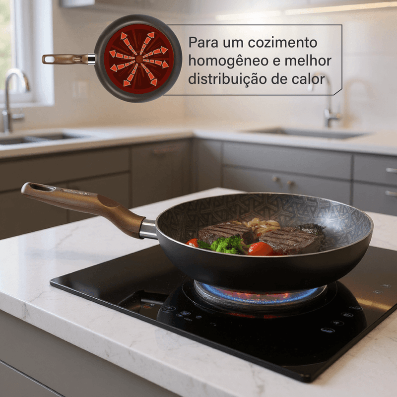 - Alumínio com Alta Espessura: Proporciona um cozimento homogêneo e melhor distribuição de calor.