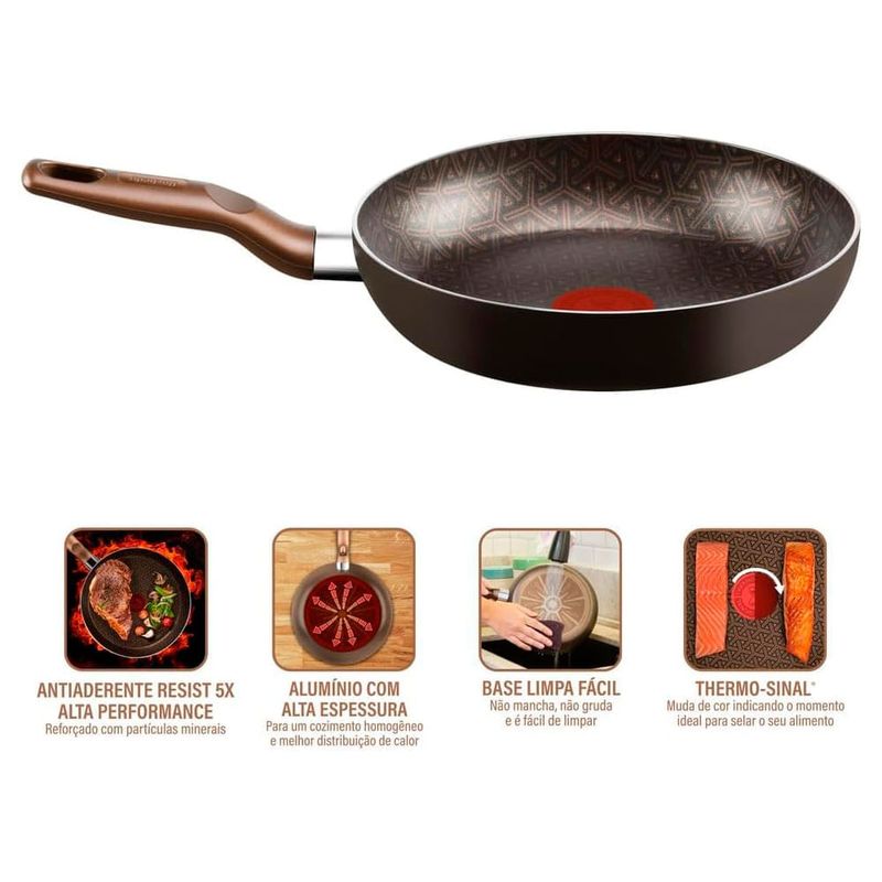 A frigideira conta com o exclusivo Thermo-sinal, que muda de cor indicando o momento ideal de selar seu alimento, garantindo resultados perfeitos em suas receitas.