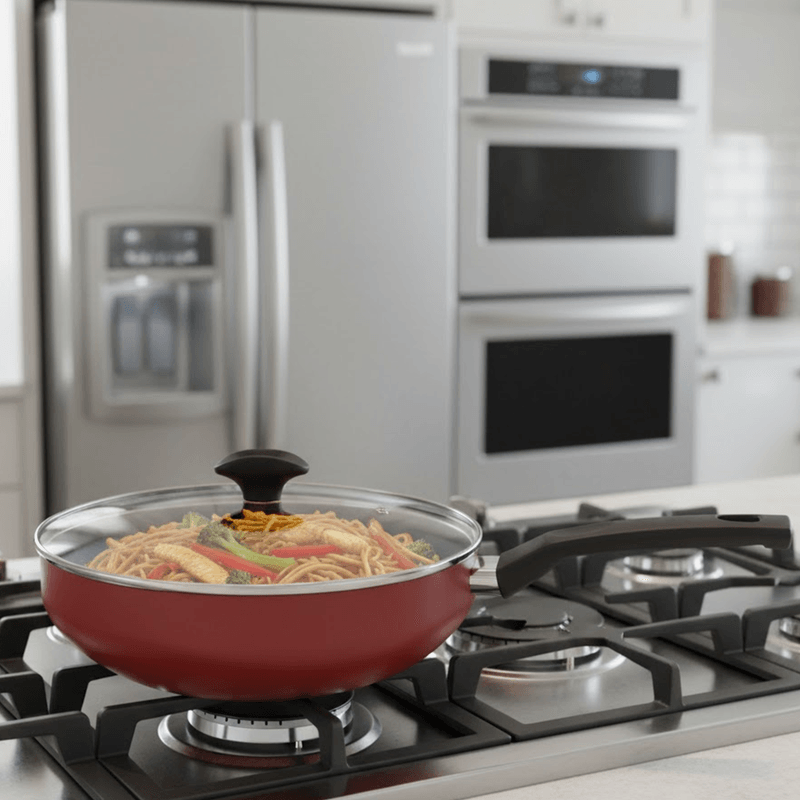 1 Frigideira Wok Amora Vermelho Matte 28 cm Multiflon com tampa