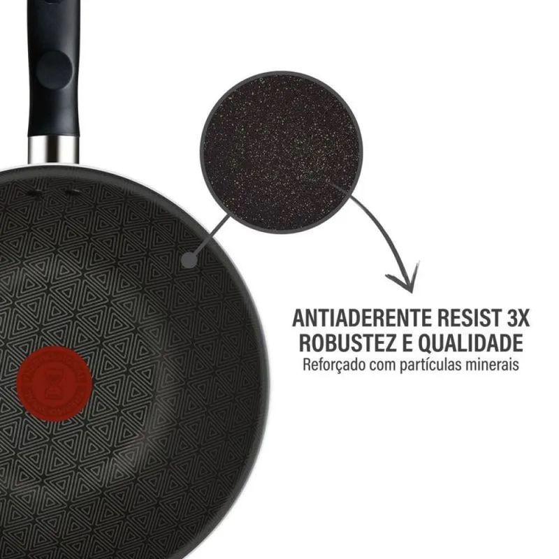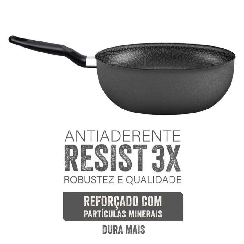 Antiaderente Resist 3X, reforçado com partículas minerais para garantir maior durabilidade e qualidade. Seus alimentos não grudam, proporcionando mais praticidade no preparo e na limpeza.