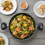 A Frigideira Wok Gourmet Multiflon de 28 cm combina praticidade, durabilidade e design moderno. Ideal para quem busca cozinhar com facilidade e sem que os alimentos grudem. Perfeita para uso doméstico ou em ambientes profissionais. Destaques: