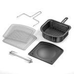 - Kit de Acessórios: Inclui duas grelhas, espeto giratório e gancho, bandeja coletora de resíduos e cesto interno de 3,5L.