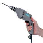 Equipada com um sistema de reversão de rotação, a furadeira permite que você ajuste o sentido da rotação de acordo com a necessidade, garantindo maior controle e praticidade durante o uso. Seja para perfurar ou para retirar brocas, o botão de reversão facilita a operação, tornando o trabalho mais confortável e eficiente.