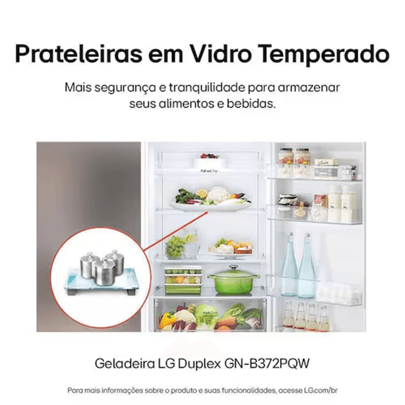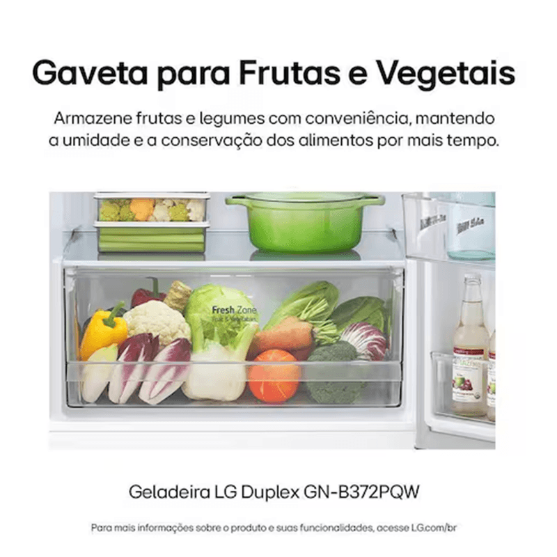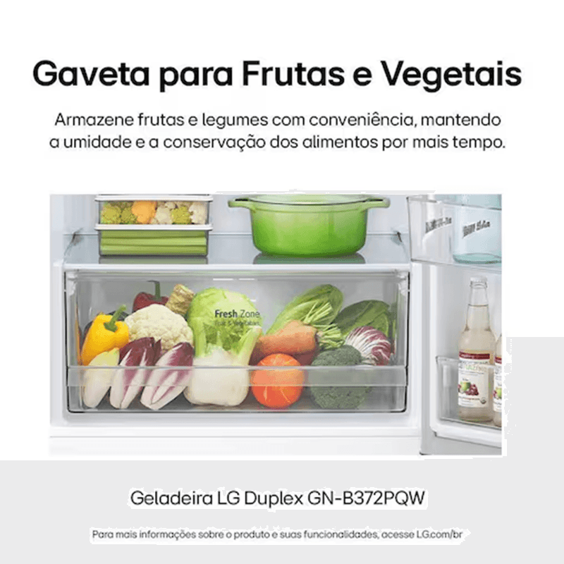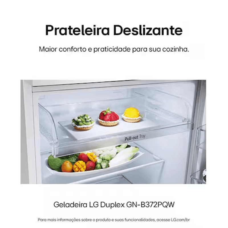 Geladeira LG Frost Free Duplex 375L – GN-B372PQWB Branca 127VDesign e Estilo Moderna, elegante e com acabamento