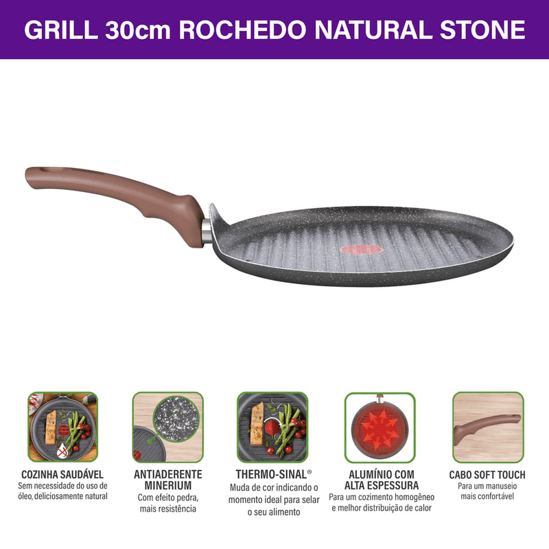 Grill de Alumínio 30cm com Revestimento Antiaderente Rochedo Natural Stone