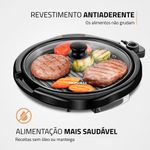 - Revestimento Antiaderente: Permite preparar suas receitas sem adicionar óleo, garantindo pratos mais saudáveis e mantendo o sabor e as propriedades dos alimentos.
