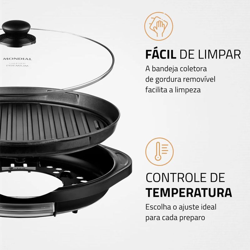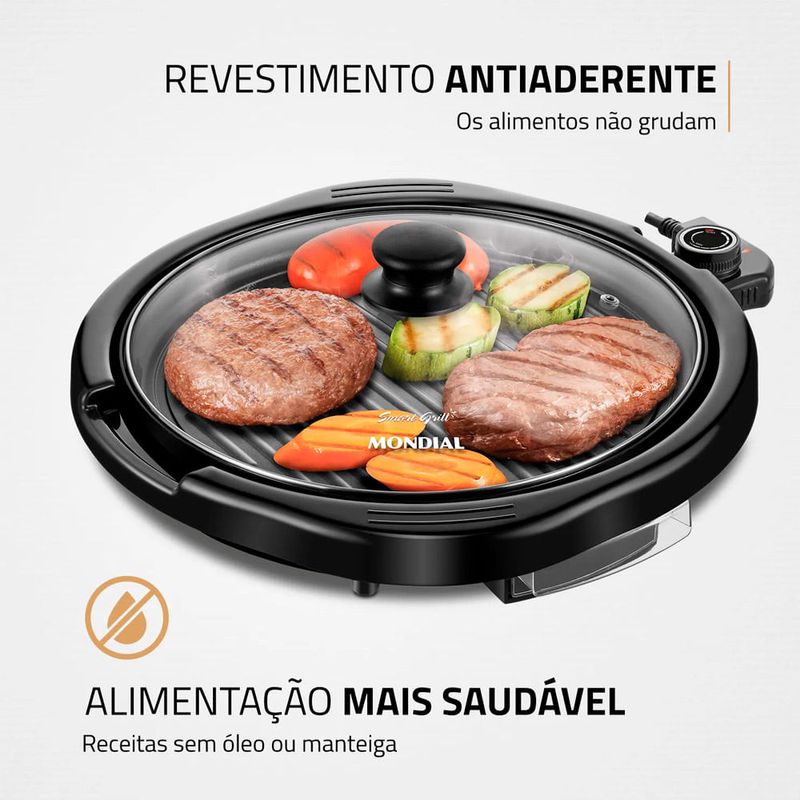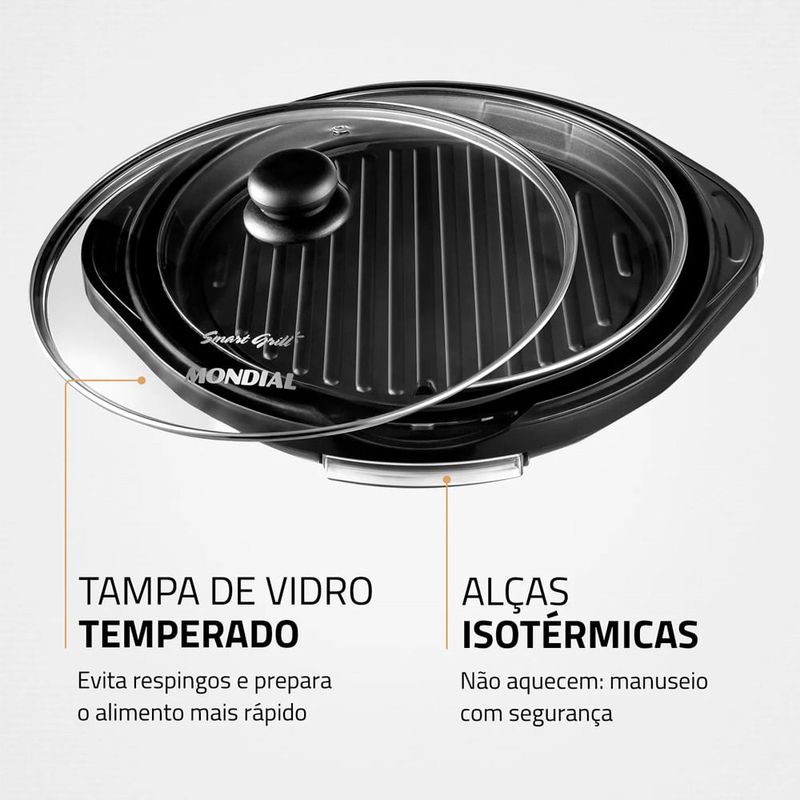Com o Grill Redondo Mondial Smart Grill 1200W, você desfruta de versatilidade, praticidade e elegância na cozinha, preparando deliciosas receitas de maneira saudável e eficiente.