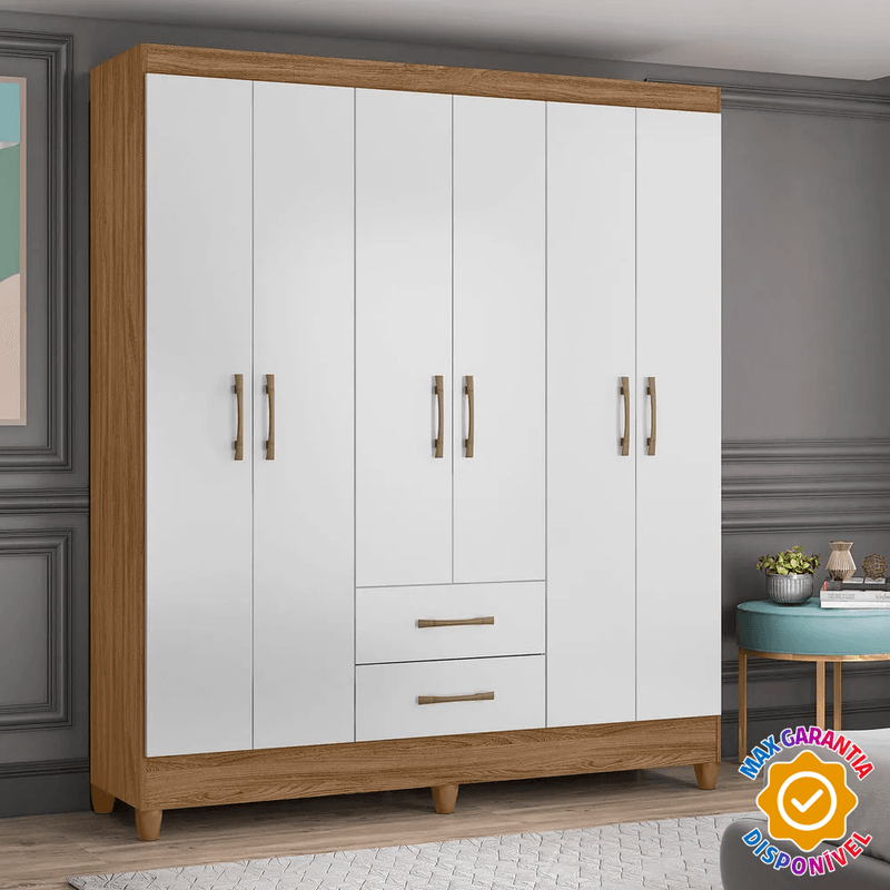 O Guarda-Roupa Panamá é projetado para durar, com uma construção robusta que garante estabilidade e resistência. A combinação de cores Naturale e Branco oferece um visual moderno e elegante, que complementa qualquer decoração.