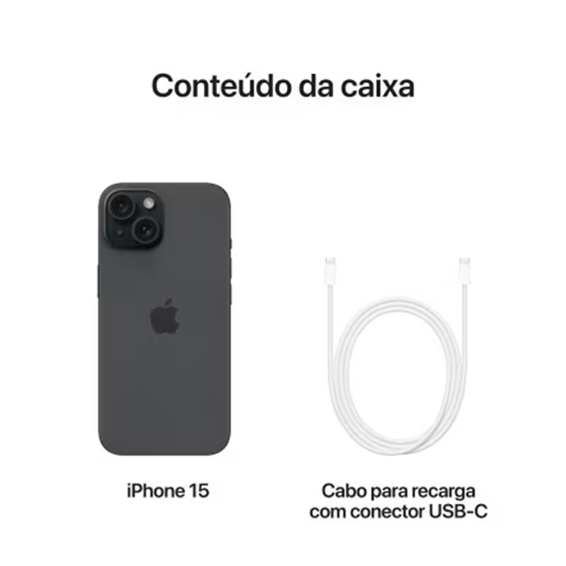 iPhone 15 Apple 128GB 6.1" Preto 5GDesign e Durabilidade Com acabamento premium em alumínio e vidro colorido por infusão, o iPhone 15 traz resistência à água, poeira e impactos (certificação IP68). Elegância e robustez em um só aparelho.