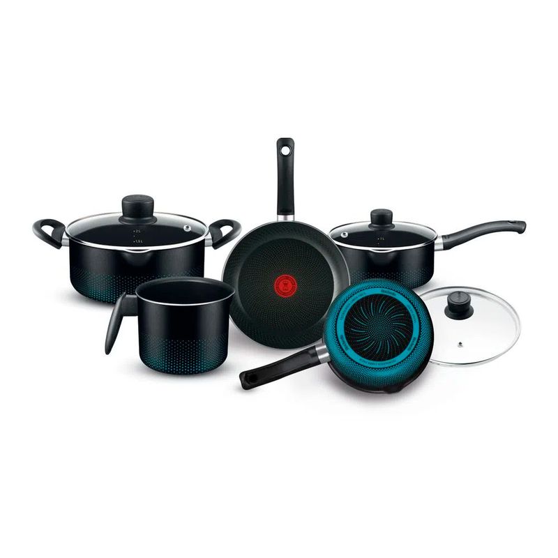 - Conjunto Completo: Composto por duas panelas (16 e 18cm), uma caçarola (20cm), uma frigideira francesa (22cm) e um fervedor (14cm), este conjunto atende todas as suas necessidades culinárias.