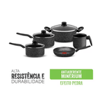 Jogo de Panelas Rochedo Stone Pro 5 Peças Antiaderente Minerium Preto e Cinza