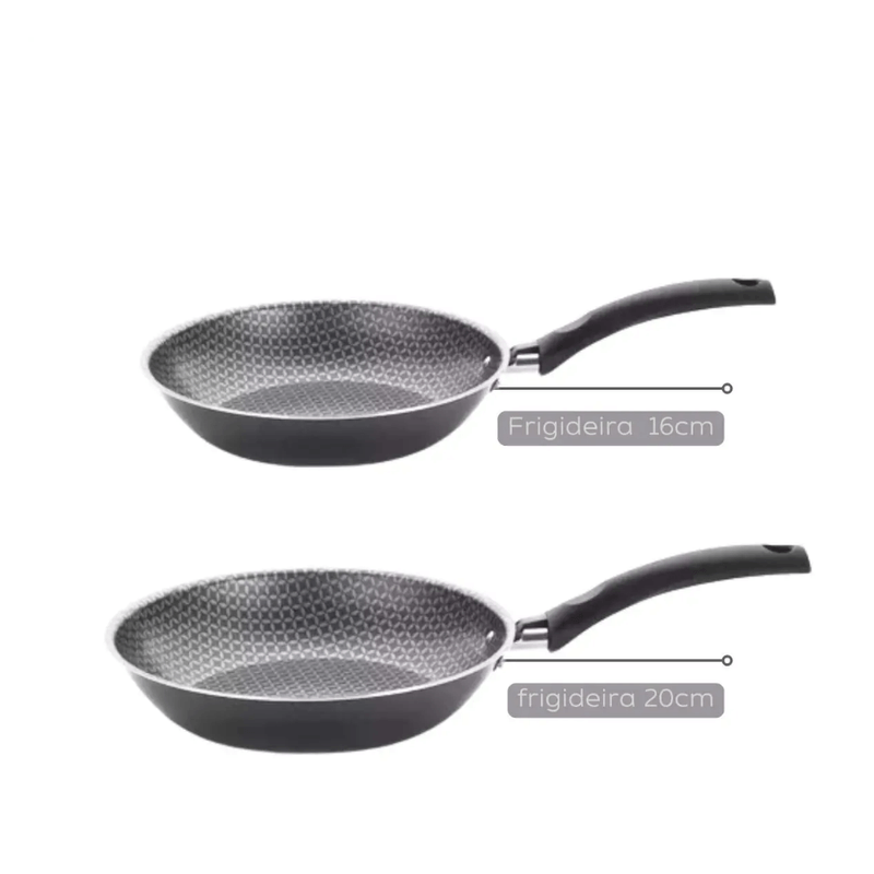 - Diâmetro das frigideiras: 20cm e 16cm