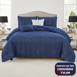 01 Kit Edredom King 5 Peças Microfibra Azul Marinho e Branco Liso