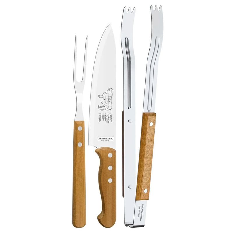 Com cabos em madeira natural, cada utensílio deste conjunto acrescenta um toque rústico e sofisticado à sua mesa de churrasco, tornando os momentos em família e entre amigos ainda mais especiais.