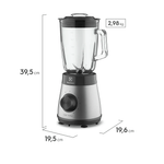 A jarra de vidro de 1,5 L é resistente, fácil de limpar e não absorve odores ou manchas. Com design robusto e capacidade ideal para preparar sucos, sopas, molhos e vitaminas para toda a família, ela também é compatível com lava-louças.Praticidade no Dia a Dia