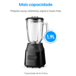 Capacidade total de 1,9L (1,5L útil) ideal para grandes porções
