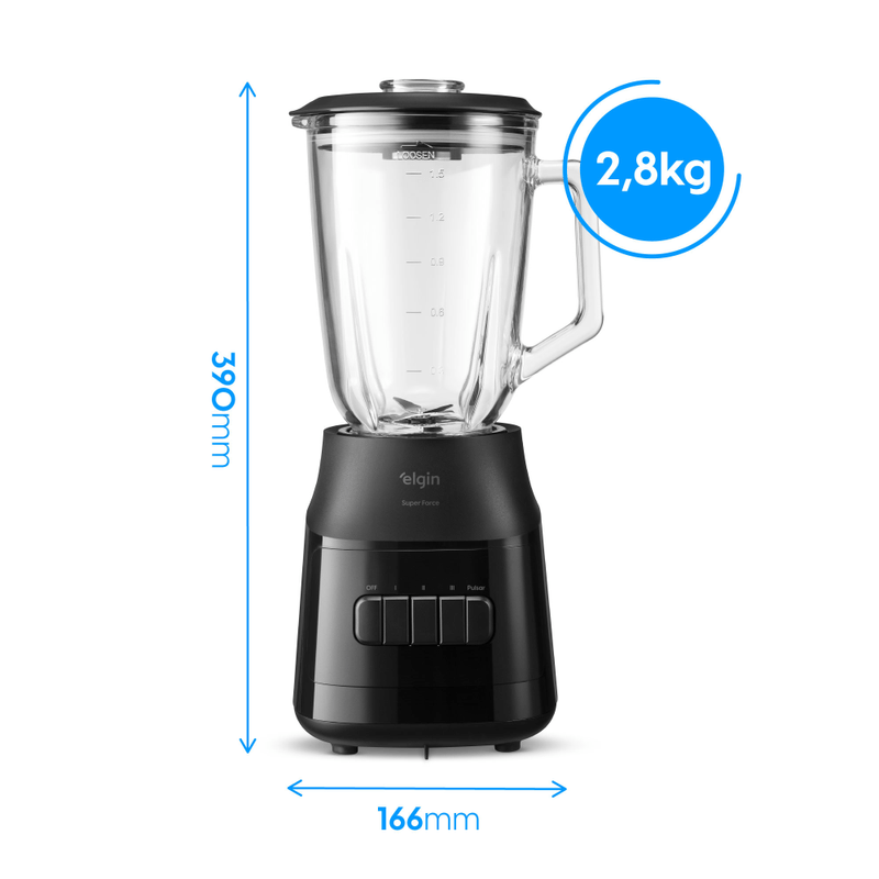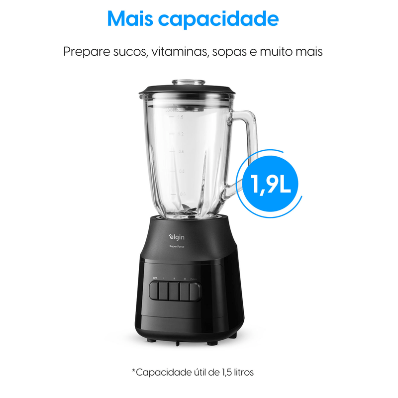 O Liquidificador Elgin Super Force é a escolha ideal para quem busca potência, praticidade e elegância na cozinha. Com motor de 900W e jarra de vidro resistente, ele garante alto desempenho no preparo de sucos, vitaminas, sopas e diversas receitas, oferecendo resultados rápidos e homogêneos.