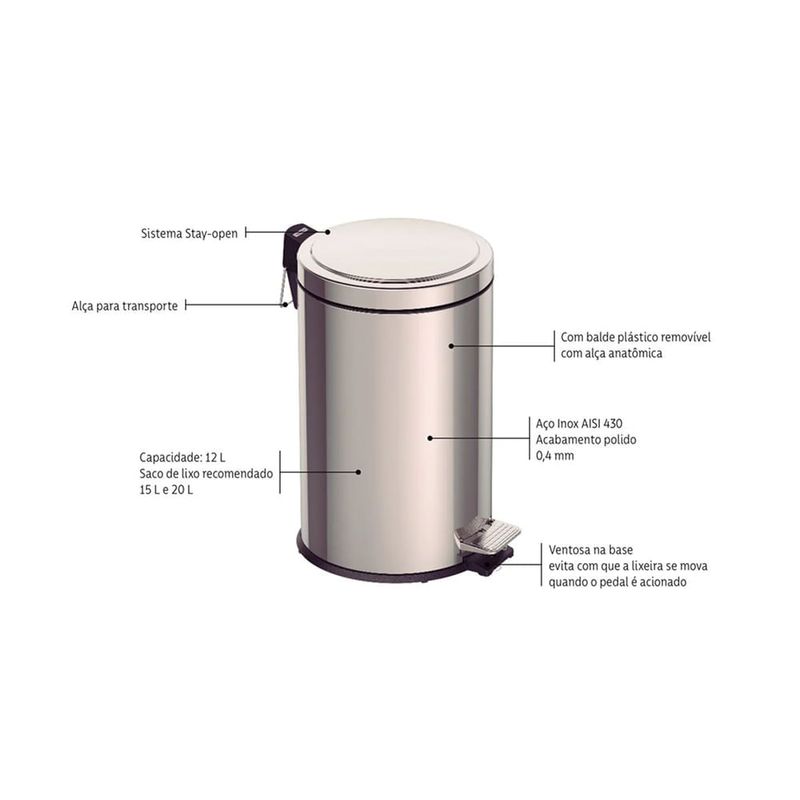 - Capacidade ideal: Compatível com sacos de lixo de 12 a 20L.