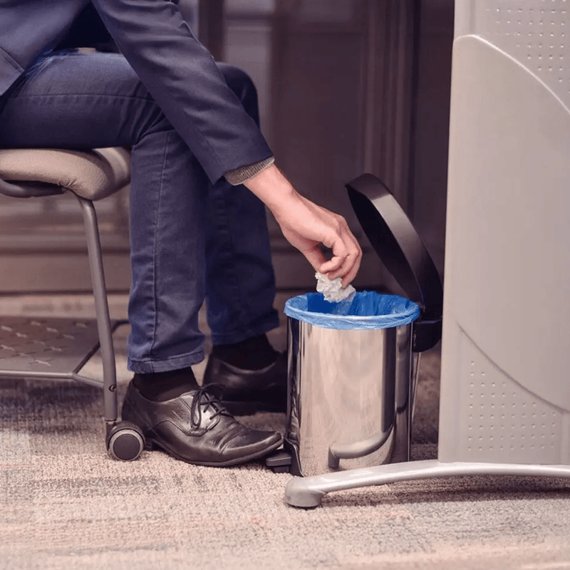 Abertura por pedal: Maior praticidade e higiene ao descartar resíduos.